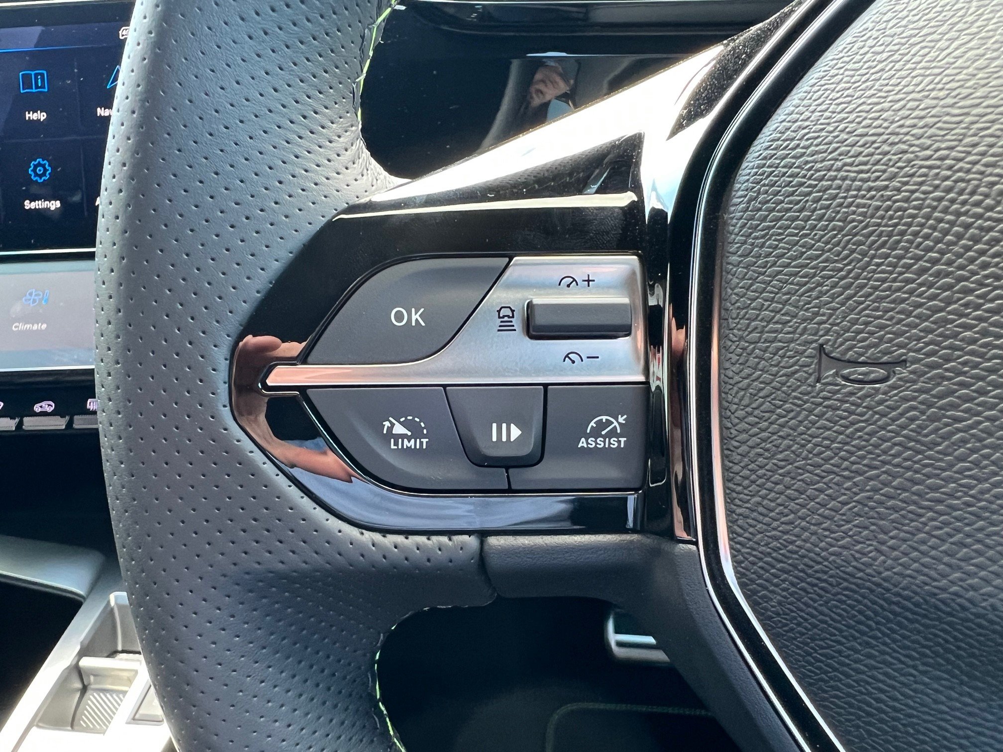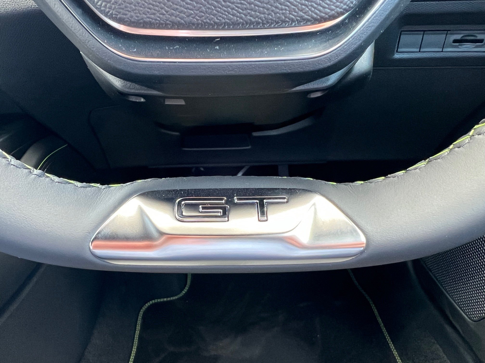 - Multifunction Full Grain Leather Steering Wheel with Adamite Green Stitching and GT Badging